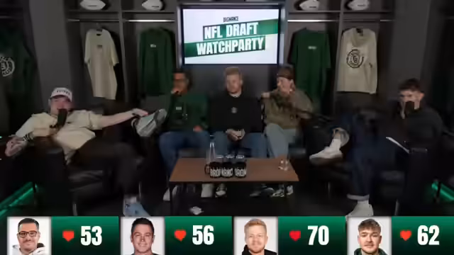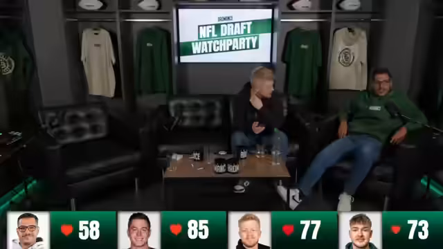 00:09:01Die Streamer begrüßen die Zuschauer zu ihrem NFL-Draft-Spiel aus Berlin und stellen die anstehenden Aktionen vor. Geplant ist ein großer Merch-Drop um 20 Uhr sowie ein gemeinsames Essen und anschließender Draft-Analysis im Stream. Die Streamer betonen, dass sie die gesamte Nacht wach bleiben wollen und eine Herausforderung mit einem Herzschlag-Monitor geplant ist, bei dem jemand Liegestütze machen muss, wenn der Puls unter 60 fällt.