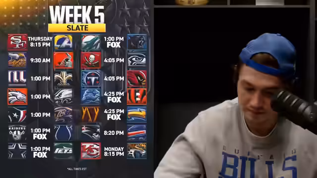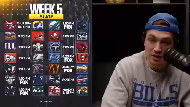 Dominik Eberle präsentiert die NFL Week 5 Preview mit Fokus auf Fantasy Football. Er analysiert das Spiel 49ers gegen Rams, bespricht Fantasy-Matchups, gibt Ratschläge zu Goff, Walker und anderen Spielern. Zudem werden Überraschungspotenziale der Commanders und die Situation bei Bills und Chiefs beleuchtet, inklusive Quarterback-Leistungen und Receiver-Optionen.