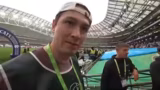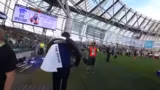 02:56:15Mit dem Einlaufen der Mannschaften beginnt der Countdown zum Kick-Off. Der Streamer berichtet, dass er und sein Team explizit die Erlaubnis haben, bis zum Beginn des Spiels zu streamen, danach jedoch vom Sicherheitspersonal vom Feld verwiesen werden. Diese letzten Minuten nutzen sie, um die finale Atmosphäre einzufangen und den Zuschauern ein letzmaliges Dankeschön zu sagen. Der Stream endet mit dem Ausstieg von der Sideline und dem Hinweis auf zukünftige Inhalte.