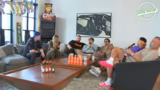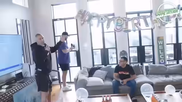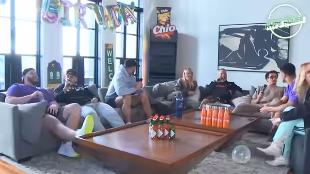 00:34:09Nach der Haustour versammelt sich die gesamte Crew im Wohnzimmer, um den offiziellen Start des Streams zu zelebrieren. Marcel Dabo gibt einen kurzen Überblick über den ersten Tag. Er kündigt an, dass Jakob Johnson direkt zum 'Drecksau des Tages' gekürt wurde, weil sein Zimmer sehr unordentlich war. Dies startet eine jahresrituelle Tradition, bei der die Teilnehmer sich gegenseitig auf ihr Verhalten im Hype House aufmerksam machen. Der Ton ist humorvoll und freundschaftlich, und die Chemie innerhalb der Gruppe scheint trotz der Provokationen intakt zu bleiben.