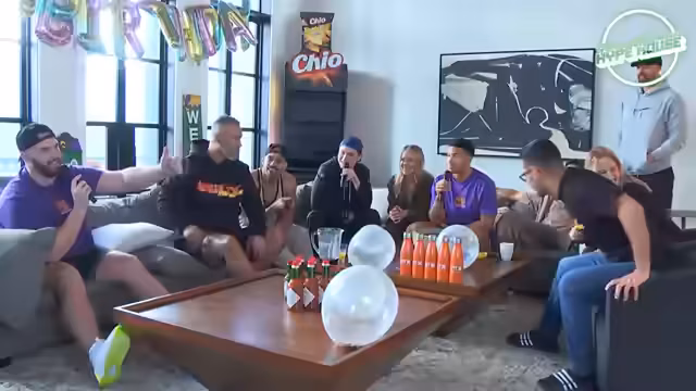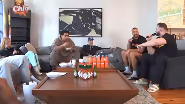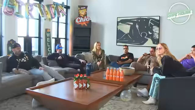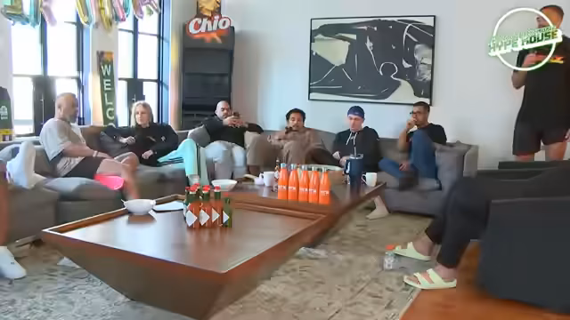 00:37:10Sami übernimmt die Moderation und begrüßt alle 'Bromantiker' zum Hype House 2025. Alle Teilnehmer sind anwesend und in bester Stimmung. Ein Highlight des ersten Tages ist das wundervolle Wetter mit über 20 Grad, was den Teilnehmern aus Berlin besonders gut gefällt, da sie letztes Jahr in Las Vegas noch frieren mussten. Kassim berichtet von einem gemeinsamen Workout, bei dem um 3 Uhr morgens gestartet wurde, was den Eindruck von hoher Disziplin und Commitment hinter der Kamera vermittelt. Auch die Sponsoren wie Fittix, Chio und Tabasco werden vorgestellt, deren Produkte und Präsenz eine zentrale Rolle in der Woche spielen.
