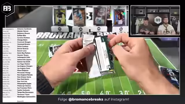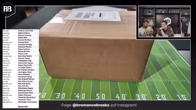 00:07:14Die Streamer starten mit Pick Your Team Breaks (PYT), bei denen Zuschauer Teams auswählen können. Sie erklären, dass die Preise für unterschiedliche Teams variieren, basierend auf einer Formel, die die Wichtigkeit der Teams und der Chancen bei Rookies berücksichtigt. Die Giants sind beispielsweise teurer aufgrund von Jackson Dart und anderen starken Rookies, während Teams wie die Patriots aufgrund von Brady Case Hits ebenfalls hohe Preise haben.