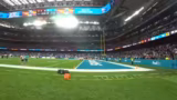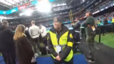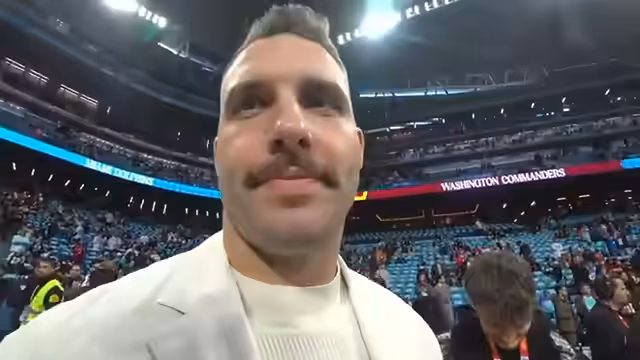 01:37:07Während der Warm-Up-Phase der Teams beobachtet das Team die Spieler und interagiert weiter mit den Fans. Brandon Coleman der Washington Commanders wird gesichtet und es gelingt, eine kurze Interaktion mit ihm zu haben. Gleichzeitig tauchen Patrick Eimermacher und Björn Werner vom RTL-Team auf, die ebenfalls an der Sidelle arbeiten. Der Streamer beschreibt die enge und aufregende Atmosphäre direkt am Spielfeldrand.