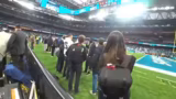 00:59:57Nachdem sie sich orientiert haben, gelangt das Team an die Sideline und gibt den Zuschauern einen exklusiven Einblick in die Vorbereitungen. Sie sichten mehrere Prominente, darunter NFL Commissioner Roger Goodell, den früheren Quarterback Dan Marino und den Footballer Jérôme Boateng. Besonders gespannt sind sie auf eine mögliche Begegnung mit Brandon Coleman und die bevorstehende Ankunft von Patrick Eimermacher und Björn Werner vom RTL-Team.