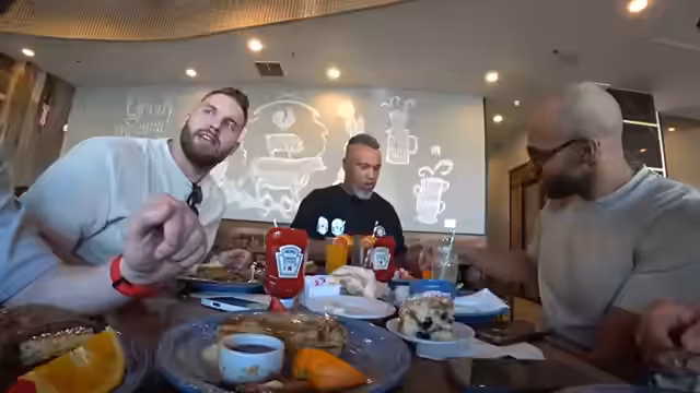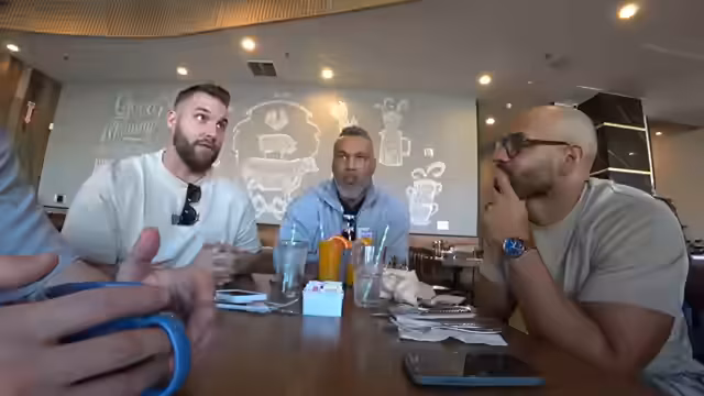 01:04:49Die Gruppe frühstückt im Hotel, wobei verschiedene Speisen wie Pancakes und Tiramisu probiert werden. Die Atmosphäre ist entspannt, und es gibt humorvolle Kommentare zum Essen und zur früheren Fitness der Teilnehmer. Gleichzeitig wird das bevorstehende exklusive Interview mit John Love angekündigt, das in K minutes stattfinden wird. Die Streamer sind seit einer Stunde online und haben bereits 7000 Zuschauer erreicht und fahren nun zu Topgolf.