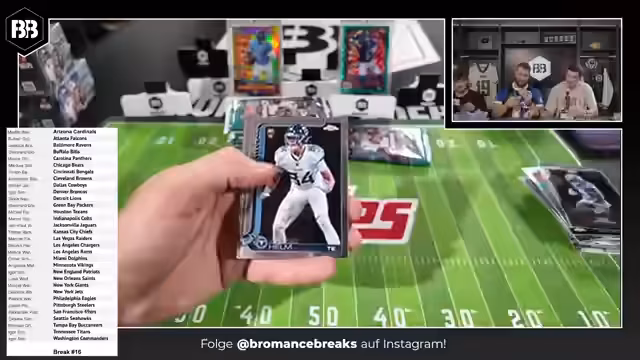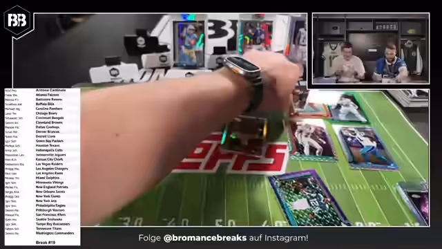 04:03:29Der Stream beginnt mit der Diskussion über verschiedene Breaks und die Zuordnung von Teams zu Teilnehmern. Es werden verschiedene Karten wie Giants, Colts und andere besprochen, die bereits verteilt wurden. Dabei gibt es einige Verwirrung bei der Zuordnung, da manche Teams mehrfach vorkommen. Die Teilnehmer arbeiten daran, die Karten korrekt zuzuordnen und die nächste Break vorzubereiten.