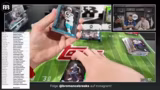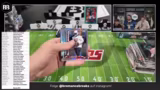 01:15:21Der Stream zeigt den Prozess des Öffnens von Boxen und das Verteilen der Karten an die Teilnehmer. Es werden verschiedene Karten-Designs wie Gold und Ultraviolet angesprochen sowie seltene Exemplare wie Rookie Patch Autos und nummerierte Karten vorgestellt. Besondere Karten wie die Travis Etienne zu 10 und die Caleb Williams Rookie Geometric Silver werden gezeigt und bewertet.