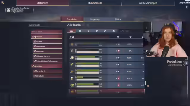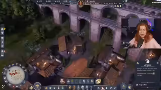 01:51:03Die Streamerin arbeitet an der Erweiterung ihrer Siedlung, indem sie eine neue Insel für die Produktion von Liegen in Albion besiedelt. Sie stellt den Bewohnern dort Gärten und Dekorationen zur Verfügung, um deren Zufriedenheit zu erhöhen. Bei der Gotterwahl entscheidet sie sich vorerst für Ceres, da deren Fähigkeit, zusätzliche Bevölkerung zu liefern, besonders in einer frühen Phase des Spiels von Vorteil ist.