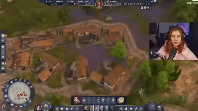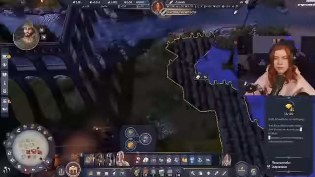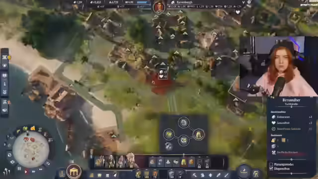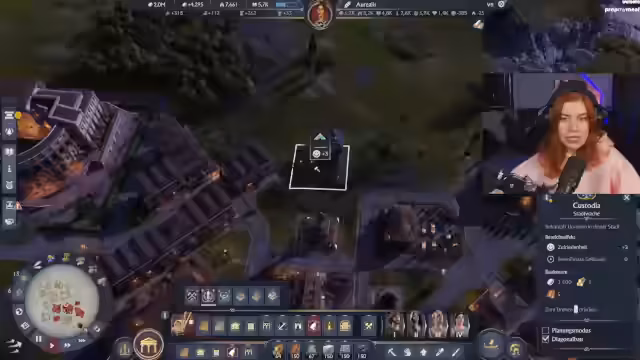 05:17:00Die Brandsicherheit ist ein wiederkehrendes Problem, trotz des Aquädukts. Eine Zisterne wird als mögliche Lösung in Betracht gezogen. Es wird ein Resub von Eivor gefeiert. Die Handhabung von Piraten wird besprochen, wobei die Option besteht, sie entweder zu bekämpfen oder mit ihren Angriffen zu leben. Die Streamerin bevorzugt es, die Piraten in diesem Spielstand deaktiviert zu haben, da sie als nervig empfunden werden. Die Zufriedenheit der Bevölkerung wird durch den Bau einer weiteren Polizeiwache verbessert. Die Ästhetik der Brücken und des Aquädukts wird gelobt. Es wird festgestellt, dass die Togenproduktion immer noch ein Problem darstellt, da die Nachfrage hoch ist. Die Bilanz wird als unübersichtlich empfunden, und es wird beschlossen, die Weinproduktion zu erhöhen.