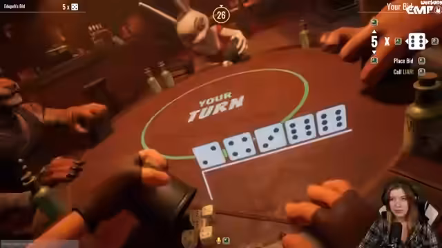 04:43:08Nachdem sie sich im Spiel weiterentwickelt haben und ein Turniermodus angekündigt wurde, wechseln die Streamerin und ihre Gäste zu einem anderen Spiel: "Lies Dice". Zuerst ist unklar, wie das Spiel funktioniert, aber nach einer kurzen Erklärung klärt sich die Regelung. Das Ziel ist, durch Schätzungen und Lügen die anderen Spieler zu täuschen und als erster seine Karten loszuwerden oder jemanden beim Lügen zu ertappen. Der Einstieg ins Spiel ist holprig, und es kommt zu Missverständnissen bei den Spielregeln und den Funktionen der neuen Karten-Modi.