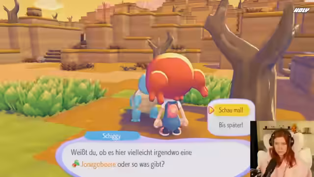 01:11:01Die ersten Interaktionen in der Spielwelt beinhalten die Hilfe für ein ausgetrocknetes Shiggy, indem man mit Wasserangriffen vertrocknetes Gras wieder zum Leben erweckt. Dies ist die Grundmechanik des Spiels, die Umgebung durch Interaktionen und Pokémon-Wünsche zu verändern. Man lernt den ersten Pokémon-Begleiter, ein Bisasam, kennen und erhält den Pokédex. Die Mission ist es, die Welt wieder zu beleben und mehr Pokémon zurückzuholen.