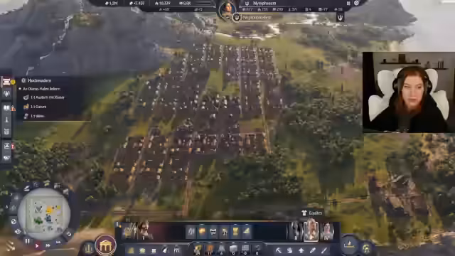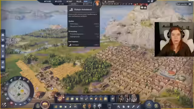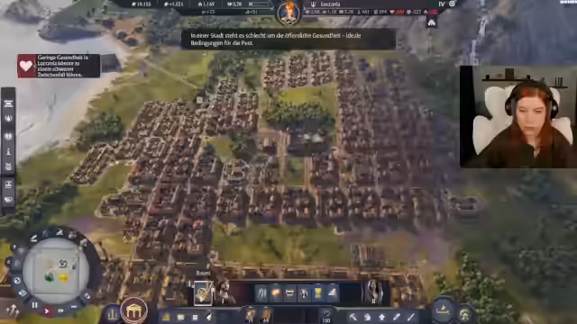 01:48:22Die Spielerin konzentriert sich auf die effiziente Abrechnung von Runden und das Ausnutzen von Vorteilen gegenüber der Konkurrenz, indem sie beispielsweise Tempel oder das Kolosseum strategisch platziert. Sie überlegt, ob es möglich ist, die Konkurrenz auszuspähen, um deren Fortschritt zu beurteilen. Ein wichtiger Aspekt des Spiels ist das schnelle Aufsteigen durch das Erfüllen von Bedürfnissen und das kontinuierliche Bauen von Häusern, um die Bevölkerungszahl zu erhöhen und somit mehr Geld zu generieren. Dies wird als der „Ballern“-Trick in Anno bezeichnet, wobei der Fokus zunächst auf der Effizienz und nicht auf dem Schönbau liegt, um schnell in höhere Stufen zu gelangen. Nebenbei werden Quests erledigt, die oft Geld oder Ressourcen einbringen, auch wenn die Produktion von Gütern wie Tuniken und Sardinen noch langsam anläuft. Die Spielerin bemerkt, dass die Hirten nicht effizient arbeiten, was zu Engpässen führt, und stellt fest, dass die Produktion von Hüten versehentlich gestoppt wurde, was die Versorgungsprobleme erklärt.