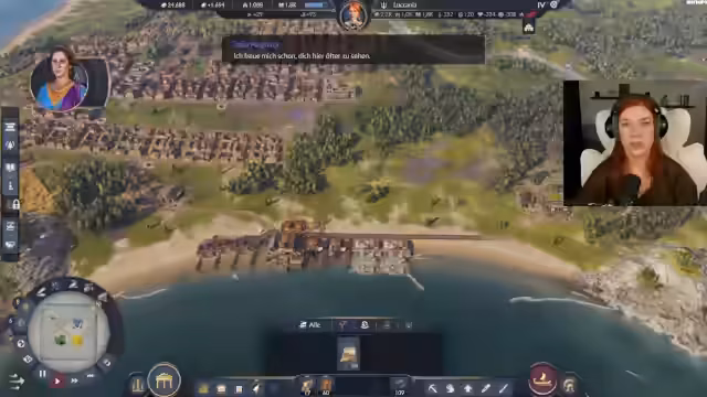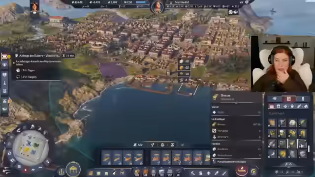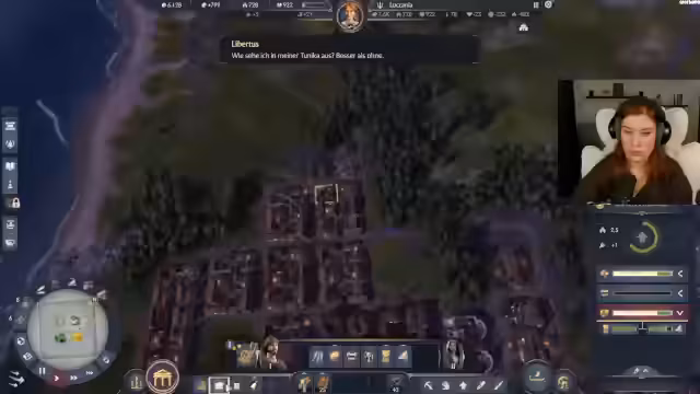06:10:30Die Streamerin informierte sich über die benötigten Arbeitskräfte für das Kolosseum, die mit 350 normalen Arbeitern als „krass“ eingestuft wurden. Sie überlegte, wie sie mehr Bewohner gewinnen könnte, da ihre Insel zu klein war, und plante, das Kolosseum als eine Art Stadtmitte am Fluss zu positionieren. Es wurde auch die unangenehme Situation des deutlichen Sieges im Anno-Wettbewerb angesprochen, insbesondere die Angst, dass Punkte von anderen gestohlen werden könnten, was angesichts der „ass“ aussehenden Städte der anderen unfair gewesen wäre. Die hohen Schiffskosten von minus 444 wurden thematisiert, und die Möglichkeit, Schiffe zu verkaufen oder Arbeitskräfte von anderen Inseln zu beziehen, wurde als „super sinnvoll“ erkannt, um die Hauptinsel für den Kolosseum-Bau zu entlasten. Dieses System, Arbeitskräfte von Nebeninseln für Schiffe zu nutzen, war der Streamerin neu und wurde als „mega smart“ empfunden.