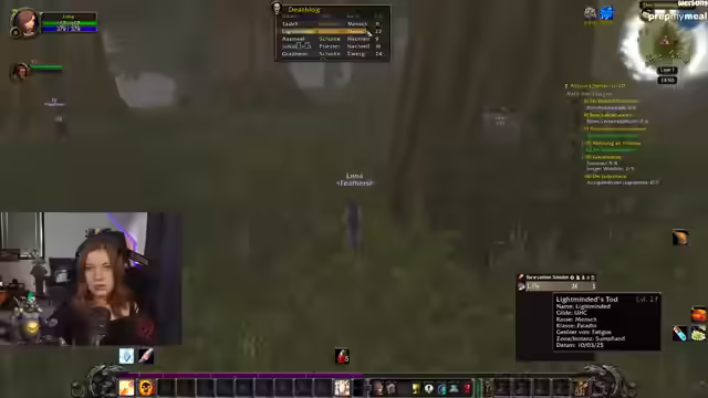 00:51:46Feathers ist aus der Hardcore One Life Community entstanden, und über 500 Leute sind online. Die Streamerin muss sich erst wieder daran gewöhnen, dass der Charakter jederzeit sterben könnte. In Retail ist sie nicht so aktiv. Es wird überlegt, welche Berufe man ergreifen soll, wobei Alchemie und Kräuterkunde in Betracht gezogen werden, aber auch Schmiedekunst wegen der Zauberstäbe. Es wird darauf geachtet, nicht zu sterben und vorsichtig zu sein, da es jederzeit vorbei sein kann. Die Quest von Millie wird angenommen. Es wird erwähnt, dass die Streamerin am Wochenende grinden wird, möglicherweise nebenbei auf dem Laptop. Es wird darauf geachtet, niemandem versehentlich etwas wegzunehmen. Die aktuelle Quest erfordert das Töten von Gegnern und Sammeln von Gegenständen. Die Streamerin startet neu in die WoW-Sucht. Sie hat WoW nicht zum Release gespielt, sondern erst später zu TBC angefangen. Es wird überlegt, eine Challenge zu machen, einen Horde-Charakter ohne Map und Questtexte hochzuleveln.