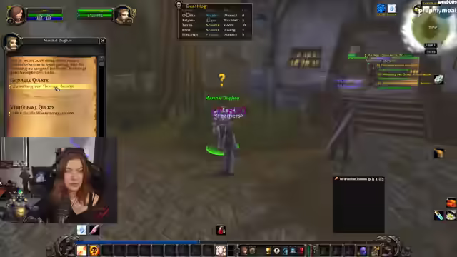 06:28:56Die Streamerin bittet um Respawn und sucht nach einem Säckchen. Sie fragt den Chat, wann sie das erste Mal WoW gespielt haben und es kommen Antworten von 2005 und früher. Sie spricht über die alten Zeiten und die Konfrontation mit der Vergangenheit, wenn man schon so lange WoW spielt. Sie erinnert sich daran, wie sie früher immer alle angeschrieben hat, weil sie nicht glauben konnte, dass es echte Spieler sind. Sie spricht über ICQ und Skype. Sie freut sich über einen Zauberstab, der bald ankommt. Sie spricht über die Genolltatzen und hofft, dass sie besser droppen. Sie möchte mehr Mana und spricht über Freunde-Tanzer, wenn sie den Zauberstab hat. Sie schaut sich die Stiefel eines anderen Spielers an und spricht über WoW-Musik, die für sie ein Muss ist. Sie spricht über die Sounds in Gnome Regan, die nicht schön sind. Sie spricht über Explosionen und eine gute Gilde. Sie spricht über TBC und bedankt sich für einen Prime. Sie kann nicht mehr tragen und isst seit anderthalb Stunden zu Abend. Sie setzt Prioritäten und zockt lieber, anstatt zu essen. Sie sucht nach Hafer in den Säckchen und spricht über Erdbeben in Deutschland.