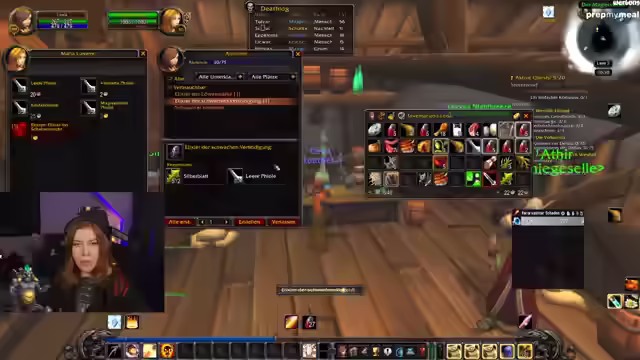 02:17:50Es wird bedauert, dass Prinzessin in dem Spiel getötet wurde, was als besonders ärgerlich angesehen wird, da diese Quest normalerweise nicht alleine gemacht wird. Es wird die Wichtigkeit betont, als Priester vorsichtig zu sein. Es wird gehofft, dass die Stimme die langen Streams übersteht, da immer noch Hustenanfälle auftreten. Es wird ein Addon namens Revoice erwähnt, falls die Stimme ausfällt. Es wird die Umgebung im Spiel als gewohnt und angenehm empfunden, auch wenn sie unordentlich wirkt. Es wird ein Addon namens Guild Need erwähnt und über dessen Installation diskutiert. Es wird sich für Follower bedankt. Schneider wird als geiler Beruf für Taschen genannt, aber es wird vermutet, dass das schon jemand in der Gilde macht. Kochen wird als nützlich angesehen, um Buffood herzustellen. Es wird versucht, das Guild-Need-Addon zu installieren, um sich für einen Zauberstab einzutragen. Es wird angemerkt, dass es smart wäre, wenn man nicht nur sagen könnte, was man möchte, sondern auch was man anbietet.