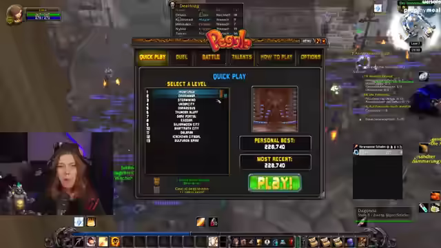 07:49:02Es wird angekündigt, dass am nächsten Morgen weitergelevelt wird, und die Spielerin betont die Bedeutung von Schlaf. Während sie in Sturmwind auf den Buff wartet, spielt sie Shakes and Fidget und erklärt, wie man den Code formulalena-eu23 einlösen kann, um Boni zu erhalten. Sie erklärt die verschiedenen Features des Spiels und wie man es nebenbei spielen kann, während man in WoW auf etwas wartet. Um die Wartezeit zu verkürzen, spielt sie Peggle und erwähnt, dass sie den Unibuff unbedingt mitnehmen möchte, da er sehr stark ist.