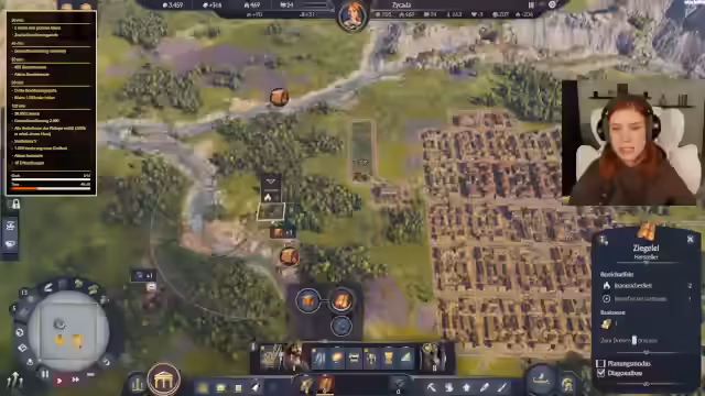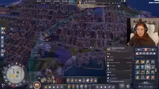 00:12:34Nach dem Streambeginn wird der Spielstand in Anno 1800 fortgesetzt. Der Streamer navigiert zur Stadt Riverford, die von der Produktion von Ponys lebt. Es zeigt sich, dass die Werte der Stadt, insbesondere die Brandsicherheit, suboptimal sind, was zu ersten Problemen führt. Nachdem ein Feuer ausbricht, wird klar, dass es an fehlender Produktion von Baumaterialien, wie Ziegeln, liegt. Der Streamer schickt Schmixi, einen der Experten, um auf einer anderen Insel eine Ziegelproduktion zu starten. Parallel wird die Handelsroute zur Hauptinsel Albion angepasst, um den Transport von Pferden zu erleichtern.