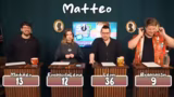 03:55:28Die Konzentration verlagert sich auf deutsche YouTube-Influencer. Es geht um die Teamgewinner der Hand of Blood Darts-WM, das meistgeklickte Video des Channels (Cockroach Simulator) und das erste gelöschte Let's Play von Hennos (Amnesia). Die Teilnehmer ringen mit diesen spezifischen Fragen, während Leon dominiert.