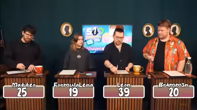 03:41:54Die Teilnehmer äußern gemischte Gefühle bezüglich ihrer Vorbereitung und ihres Wissens über das Thema. Es wird erklärt, dass das Format neu erfunden wird und es keine festen Regeln gibt. Die Punktevergabe wird erläutert: Vier Punkte für eine richtige Antwort, wobei bei einer falschen Antwort die anderen Teilnehmer einen Punkt erhalten. Es wird die Möglichkeit zum 'Buzzern' eingeführt, sobald eine Frage freigegeben wurde, und ein Pedal zur Freigabe erwähnt. Die Teilnehmer scheinen mit dem Konzept vertraut und bereit für die erste Frage. Abschließend wird geklärt, dass derjenige gewinnt, der am Ende von 51 Fragen mehr Punkte als die anderen hat.