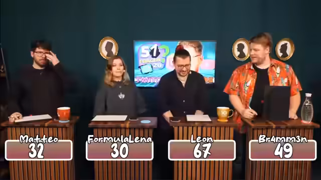 03:32:10Das Spielformat wird von dem geografischen Ratespiel zu einem Quiz namens '51 Fragen' gewechselt, das sich mit der Geschichte von Twitch und YouTube befasst. Moderator Andi begrüßt die Teilnehmer und erklärt die neuen Spielregeln, bei denen für richtige Antworten Punkte vergeben werden und für falsche die anderen Teilnehmer punkten.