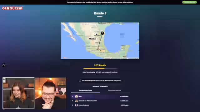 05:39:00Das Rennspiel wird zugunsten von GeoGuessr beendet. Die Streamerin erklärt die Abläufe: jeder Teilnehmer hat zwei Minuten Zeit, um den Ort eines zufälligen Google Street View-Bildes zu erraten. Es wird eine Party erstellt und der Code für den Beitritt geteilt. Das Ziel ist es, den Standort so genau wie möglich zu bestimmen, wobei geografische Hinweise wie Linksverkehr, Straßenschilder und Vegetation entscheidend sind.
