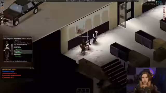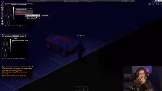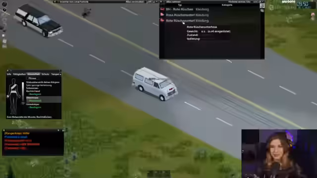 01:13:11Nach anfänglichen Schwierigkeiten gelingt es formulalena, zur Krankenstation zu gelangen und trifft auf Radlerauge. Sie stellt Fragen zur Zusammenarbeit und wie sie sich in sein Auto einsteigen kann. Beide arbeiten nun zusammen, um in der zombieverseuchten Umgebung zu überleben und Ressourcen zu sammeln. Streamer und Radlerauge planen ihre nächsten Schritte und erkunden gemeinsam die Spielwelt.