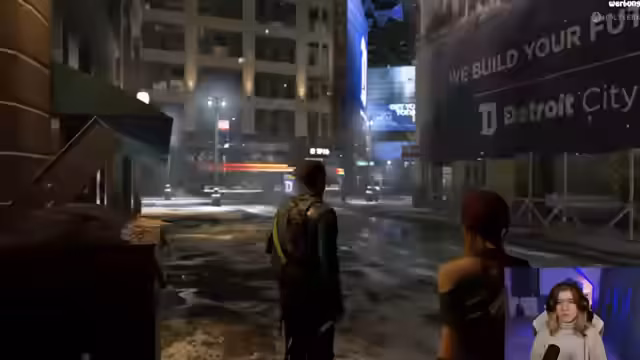 00:10:34Nachdem die Streamerin den Livetext-Chat einige Zeit hat sprechen lassen, startet sie endlich in das Finale von 'Detroit: Become Human'. Sie spielt als Connor im Maschinen-Modus und erklärt, dass sie in diesem Durchlauf komplett andere Entscheidungen trifft als im letzten. Die Handlung führt sie zu Hank Anderson, der Connor aufgrund seines Verhaltens als kalte Maschine schießt, was zu seinem Tod führt. Die Geschichte wechselt anschließend zu Markus, der in den Stratford Tower eindringt, um eine Rede für die Rechte der Androiden zu halten.