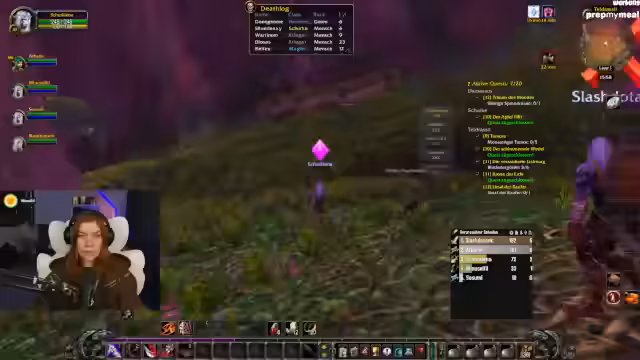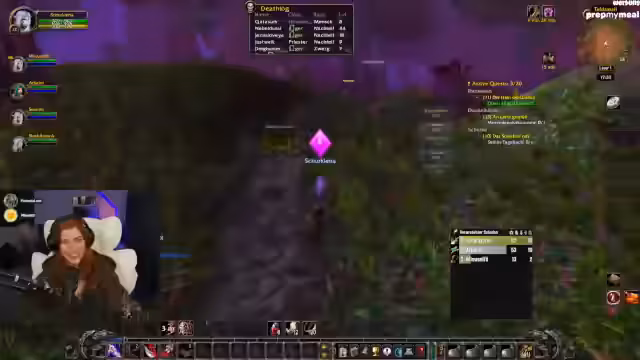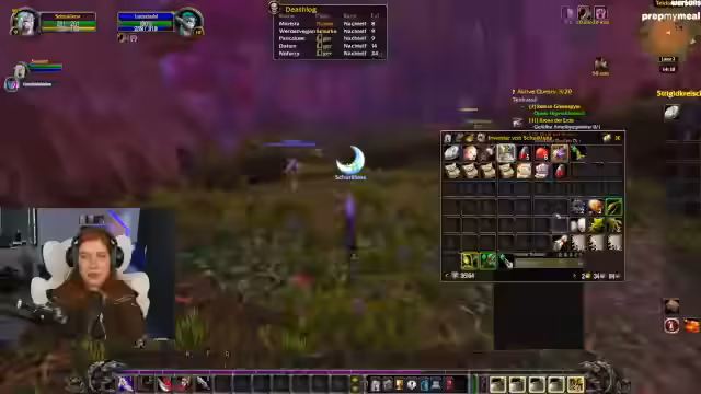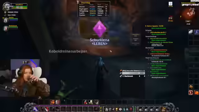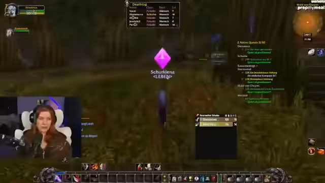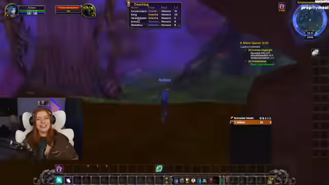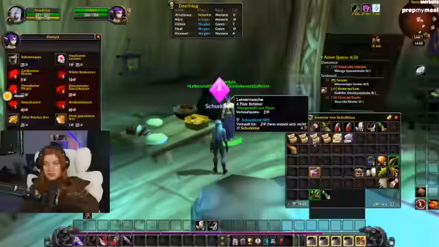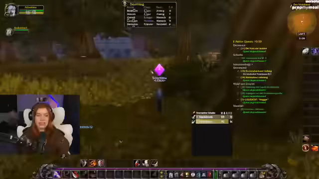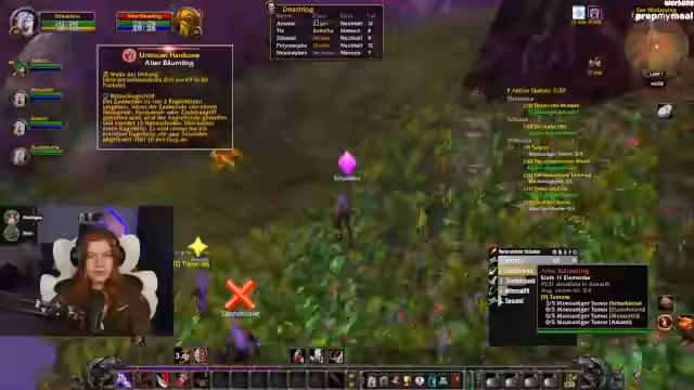 02:54:43Die Streamerin erwähnt einen personalisierten Adventskalender von ihrer Community für ihr Stream-Outfit. Es folgt Quest-Progress: Sammeln von Kräutern, Timberling Seeds und Katzen-Fellen. Diskussion über die Quest-Kette „Crown of the Earth“ und die Notwendigkeit, nach Darnassus zurückzukehren.