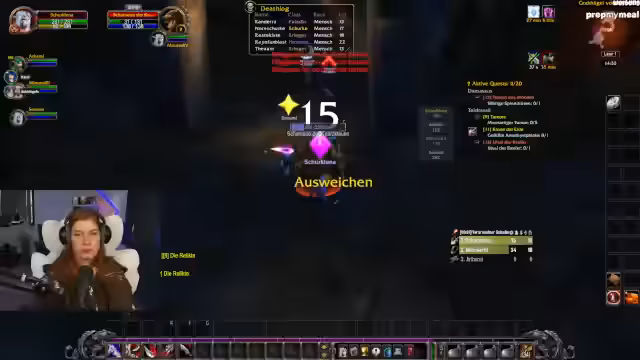 06:25:00Fokus liegt auf der Bewältigung herausfordernder Quests wie der Schurken-Quest, bei der Stealth-Mechaniken genutzt werden müssen. Die Spieler warnen sich gegenseitig vor Gefahren und planen strategisch, um Todesfälle zu vermeiden. Es gibt Absprachen über Rollenverteilung (z.B. Heiler vs. Damage-Dealer) und den Einsatz von Fähigkeiten wie 'Taschendiebstahl'. Die Zusammenarbeit wird als essenziell für den Erfolg der Quest hervorgehoben.
