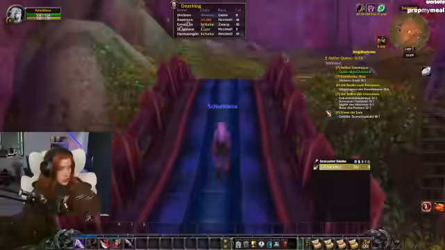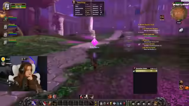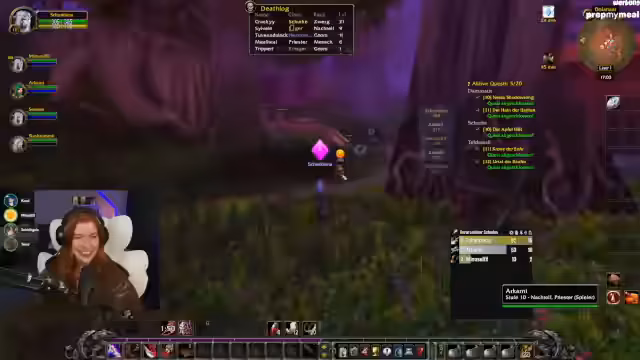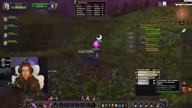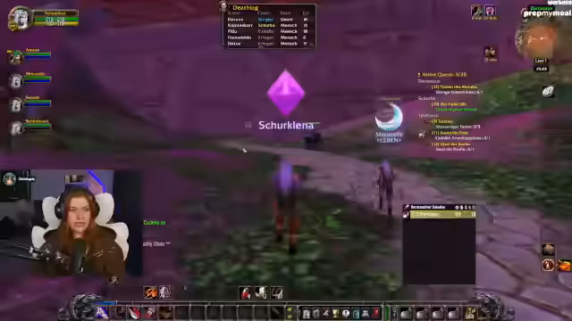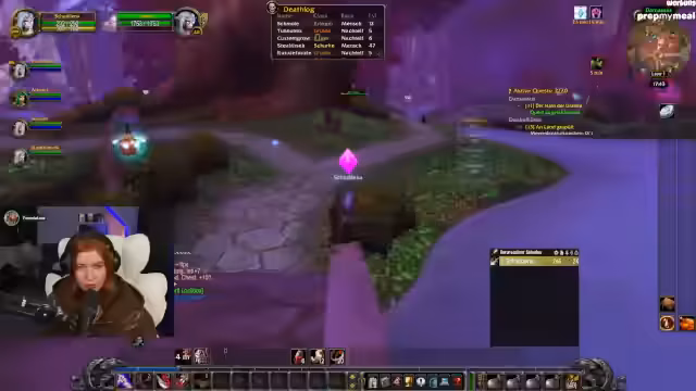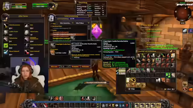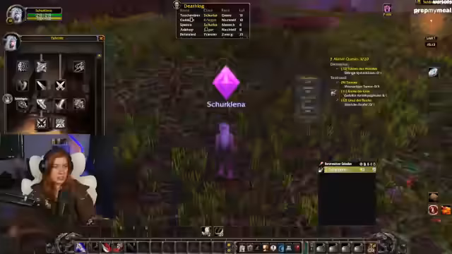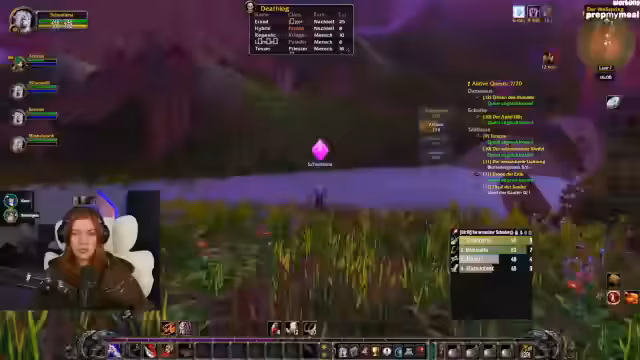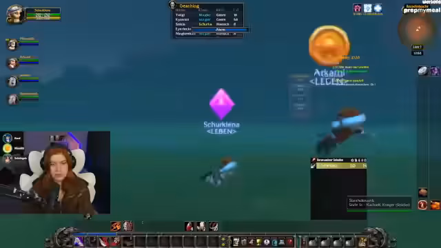 07:22:55Lena refreshet WoW-Mechaniken wie Waffen-Skills (Langsame Waffe in der Mainhand für höheren Schaden) und klärt Stats wie Angriffskraft für Jäger. Parallele Trailervorführungen von Mechi und SauerCroud werden kommentiert, wobei der Wunsch nach kreativen Outfits (z.B. Sailor Moon-Style) geäußert wird. Die Gruppe plant das Erreichen von Level 20 für die Deathmines am Folgetag.