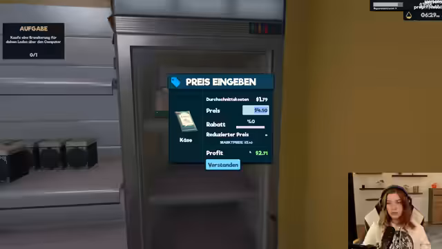 01:36:39Der Stream beginnt mit der Betreibung eines Supermarkt-Simulators. Zunächst werden grundlegende Produkte wie Eier, Kaffee und Wasser eingekauft und im Regal platziert. Der Fokus liegt auf der anfänglichen Preisgestaltung und dem Ziel, Profit zu machen, wobei der Streamer auf Kundenfeedback reagiert, indem er bei Bedarf Rabatte einrichtet oder Preise anpasst. Der Laden wird unter dem Namen 'Gim Lidl' eröffnet und durch Umräumen und das Hinzufügen neuer Regale optimiert.