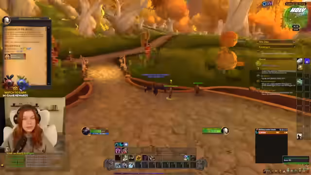 03:03:36Nach Abschluss der Questreihe stellt die Streamerin fest, dass alle drei nachfolgenden Quests unabhängig voneinander sind. Sie entscheidet sich, mit Arathor weiterzumachen, da sie die Story und die Dynamik zu ihm genießt. Ihr Ziel ist es, den Sonnenbrunnen zu retten und den geknickten jungen Paladin zu unterstützen, dem sein Vater eine Wunde zugefügt hat.