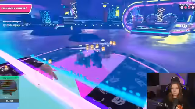 07:21:55Nachdem die Geisterjagd erfolgreich beendet und der Sieg mit 444 Münzen errungen wurde, wechselt der Fokus zu dem Spiel Fall Guys. Das Ziel ist, einen Sieg für das Stream-Team zu holen, da ein gemeinsamer Sieg als notwendiger Teil der Challenge angesehen wird. Der Streamer ist dabei unsicher mit den Steuerungen und hat Bedenken, gegen jüngere und erfahrenere Spieler antreten zu müssen, was zu einer nervösen Atmosphäre führt.
