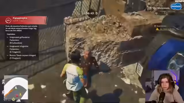 02:26:10In einer Schicht mit einem Hausbrand muss die Streamerin mehrere Patienten gleichzeitig mit einem Kollegen triagieren. Sie lernt die korrekte Einordnung der Schweregrade von Verletzungen (Rot: akut, Gelb: dringend, Grün: leicht) und muss priorisieren, wer zuerst behandelt wird. Obwohl eine Person stirbt, erreicht sie am Ende eine gute Bewertung von S, zeigt aber auf, dass sie noch Schwächen in der Triage hat und Patienten übersehen kann.