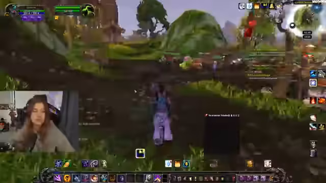00:09:31Nach Musikabschaltung startet das Spiel World of Warcraft: Mists of Pandaria Classic. Die Streamerin erwähnt, dass der Server am Vorabend im Jade-Wald laggte, aber aktuell stabil scheint. Zuerst werden die Taschen geleert und Frühlingszwiebeln für eine Quest geerntet, die 24 Stunden zum Wachsen benötigt hat. Anschließend wird ein Samen gekauft und verschiedene Dinge gepflanzt. Es folgen Probleme mit der Ladeanzeige eines Zaubers und die Verwaltung des Inventars durch Versand in einen Briefkasten. Die Route führt nach Shadow-Pan und anschließend ins Tal der vier Winde, um dort die Nothingberry-Quests fortzusetzen.