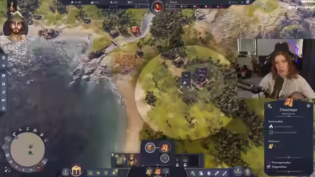02:46:08Die Streamerin beginnt mit dem Aufbau ihrer Stadt in Anno 117: Pax Romana und konzentriert sich zunächst auf die Holzproduktion, indem sie mehrere Holzfällerlager baut. Sie plant den Bau eines Lagerhauses und von Wohnhäusern, um die Bevölkerung zu erhöhen. Es gibt keine Straßen im Spiel. Sie überlegt, ob Brei eine smarte Wahl ist, da er mehr Bevölkerung bringt. Sie entscheidet sich, sowohl Brei als auch Holz zu produzieren, um die Bedürfnisse der Bevölkerung zu decken und die nächste Bevölkerungsstufe zu erreichen. Die Streamerin stellt die Produktion auf schneller, um schneller Holz zu produzieren. Sie baut einen Markt, um Geld zu verdienen, und entscheidet sich für Tuniken, da diese mehr Einkommen bringen. Sie baut weitere Wohnhäuser und ein Lagerhaus, um die Versorgung der Bevölkerung sicherzustellen. Es gibt ein Problem mit der Anordnung der Gebäude, das die Streamerin korrigiert. Sie baut Hüte, um Einkommen und Zufriedenheit zu steigern, und plant, mehrere Inseln zu besiedeln. Sie baut Ziegelproduktion, Holzbrenner und ein Lagerhaus, um die notwendigen Materialien für den Ausbau der Stadt zu produzieren. Sie baut Feuerwehren, um Brände zu verhindern. Die Streamerin lässt die Leute aufsteigen und verbessert die Ziegelproduktion. Sie baut ein Medici-Ding und weitere Märkte, um die Wirtschaft anzukurbeln. Sie entdeckt Harz, Lavendel und Olivenöl auf einer Insel und nimmt diese direkt in Besitz. Die Streamerin gerät ins Minus, nimmt aber das Geld von einem Zuschauer an. Sie muss wieder Holz produzieren und trifft verschiedene Entscheidungen, die ihr Vermächtnis prägen werden. Sie baut Brotproduktion, Lagerhäuser und Bäckereien, um die Bevölkerung zu versorgen. Sie lässt die Leute wieder aufsteigen und baut weitere Wohnhäuser. Sie nimmt ein Heiligtum mit Wissen, um die Forschung zu fördern.
