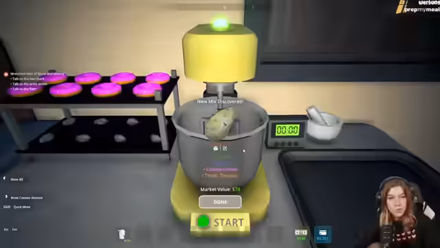 02:00:08Im Zentrum des Streams steht die Herstellung verschiedener Drogen. Die Streamerin stellt ihre Mixing Station fertig und beginnt mit dem Mischen von Zutaten wie Gasoline, Paracetamol, Energy Drinks und Viagra, um neue Produkte wie Charatur, Fat Butt und Miracle Piss zu kreieren. Sie testet verschiedene Kombinationen und stellt dabei fest, dass einige Mischungen besonders wertvoll sind, während andere ein eher geringes Potenzial haben.