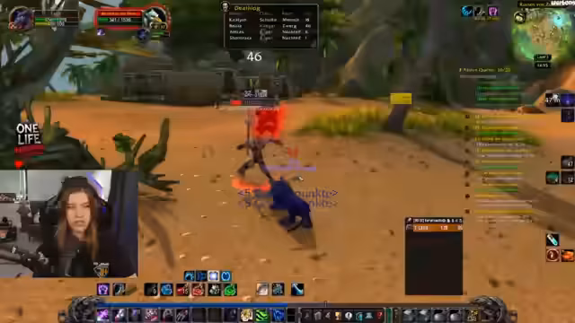 06:51:38Die Gruppe arbeitet an verschiedenen Quests in Desolace, darunter die Beschaffung von Skorpionengift und das Töten von Skorpionen für spezifische Questziele. Lena spricht über die Schwierigkeiten, bestimmte Mobs zu treffen, und beschreibt die Umgebung als gefährlich, besonders bei Escort-Missionen. Dabei müssen sie auf spezielle Elite-Mobs aufpassen und kluge Taktiken anwenden, um die Quests erfolgreich abzuschließen.