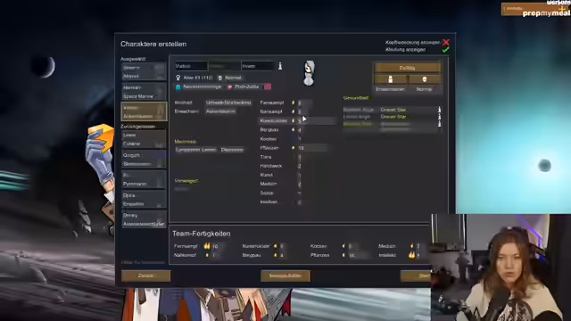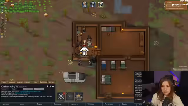 02:36:46Nach der Generierung der Startmap beginnt die Besetzung der neuen Kolonie. Zuerst werden die Anfangscharaktere ausgewählt, darunter ein intelligenter Bergmann mit Interesse an Drogen und Körpermodifikationen, seine depressive Mutter, eine Pflanzen-Spezialistin und ein erfahrener Koch. Auch die Twitch-Integration sorgt für erste Besetzungen, wobei Chat-Mitglieder wie 'Raphael' und 'Back from Hell' als Charaktere im Spiel auftauchen. Die Familie des initialen Spielers wird aufgelöst, um Inzest zu vermeiden.