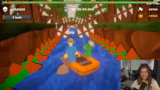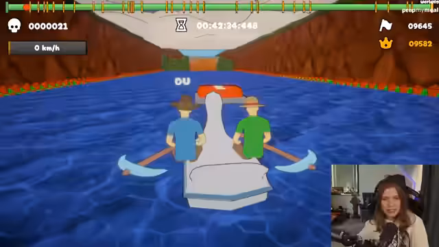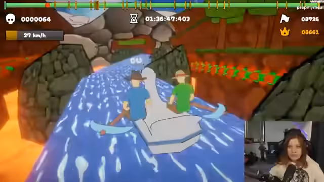00:37:09Nach einigen technischen Vorbereitungen startet das geplante Spiel Paddle, Paddle, Paddle. Die Streamerin und ihr Mitspieler Meloni kämpfen gemeinsam durch ein actiongeladenes Paddle-Level, bei dem sie auf einem instabilen Floß Hindernisse ausweichen müssen. Ihre Kommunikation ist geprägt von Panik, rhythmischen Aufforderungen und knappen Vermeidungsmanövern, die das Spiel intensiv und komisch machen. Sie erreichen einen Checkpoint, was sie kurz erfreut, erkennen aber, dass der schwierige Teil gerade erst beginnt und es viele weitere Stunden Spielzeit geben soll.