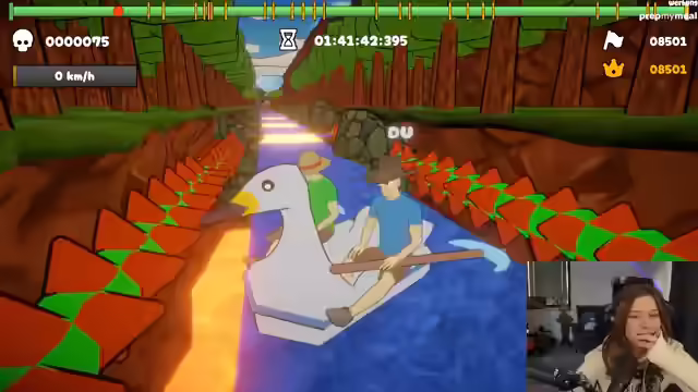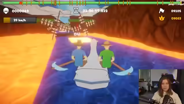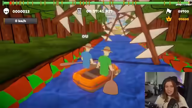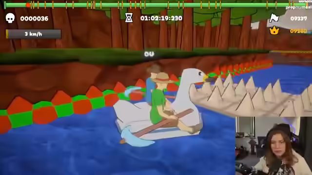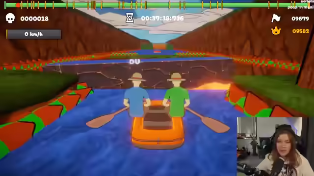 00:36:41Die Streamerin und Meloni beginnen mit dem Spiel Paddle, Paddle, das eine Twitch-Integration haben soll. Der Entwickler des Spiels ist im Chat anwesend und erklärt, dass der Patch mit der Twitch-Integration noch nicht hochgeladen wurde. Trotzdem starten die beiden einen Online-Raum und versuchen, das Spiel gemeinsam zu spielen. Sie stellen fest, dass Maus und Tastatur für die Steuerung besser geeignet sind als ein Controller. Nach anfänglichen Schwierigkeiten finden sie einen Rhythmus und meistern die ersten Level des Spiels überraschend gut. Dabei kommentieren sie humorvoll ihre Fortschritte und die Zusammenarbeit. Sie erreichen einen Punkt im Spiel, an dem sie sich zwischen einem einfachen Weg und einem schwierigeren Weg entscheiden müssen, der jedoch eine Belohnung verspricht. Sie entscheiden sich für den schwierigeren Weg und schaffen auch diesen mit vereinten Kräften.