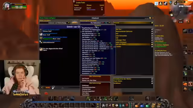 02:56:02Der Streamer kündigt an, den Dämmerwald zu questen und später das Sumpfland für schwierigere Aufgaben aufzusuchen. Er erwähnt spezifische Questreihen wie 'Morbin Fel' und 'Legende von Stalvan', die er mit Hilfe anderer Spieler abschließen möchte, da sie zu riskant für Solo-Spiele sind. Gleichzeitig plant er, Berufe wie Lederverarbeitung weiterzuskillen, um Ausrüstung zu verbessern, und äußert Interesse an der 'Schlinger'-Quest, diese aber aufgrund ihrer Gefährlichkeit aufzuschieben. Er betont, dass Inhalte wie die '1000 Nadeln'-Quest besser für höheres Level geeignet sind.