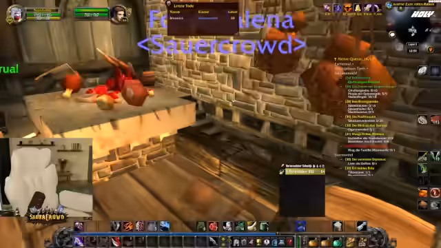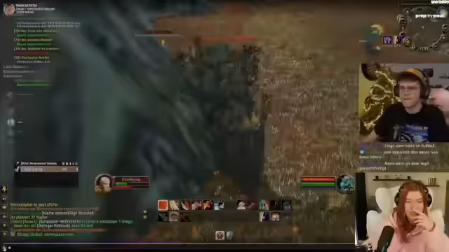 04:40:27Vorbereitungen für einen bevorstehenden Raid werden besprochen, wobei ein Hunter einen Mini-Untoten als Pet zeigt. Es geht um das Sammeln von Questgegenständen wie Buffs und Giften. Währenddessen treten mehrere technische Probleme auf, darunter plötzlicher Lärm im Spiel, eine fehlende Unterwasser-Atemfähigkeit und der Verlust des Tons, was zur Folge hat, dass der Stream ohne Ton fortgesetzt wird. Ziel ist es, eine bestimmte Burg zu erreichen.