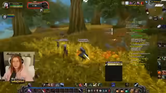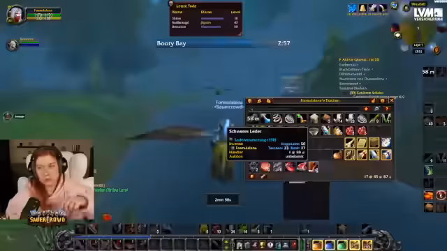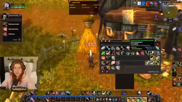 01:00:13Die Streamerin hilft einem anderen Spieler bei der Quest gegen Hogger im Dämmerwald. Die Gegend ist jedoch stark überlaufen, was das Finden des Bosses erschwert. Anschließend wird eine zufällige Horoskop-Quest angenommen, die als sehr gelungen und unterhaltsam empfunden wird. Die daraus resultierende Belohnung ist wertvoll und enthält nützliche Items wie Heiltränke und Kochbananen.