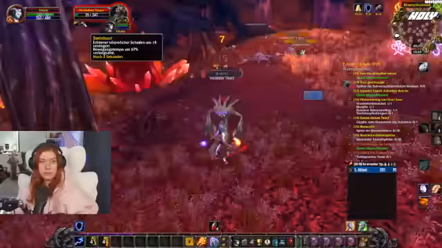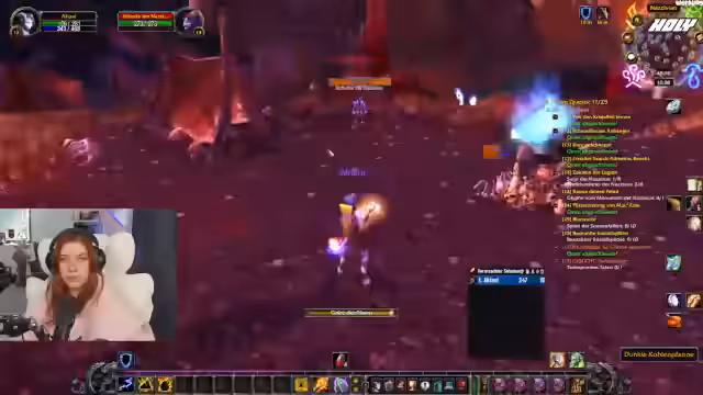 02:15:04Der Stream beginnt mit der Suche nach benötigten Questgegenständen, insbesondere Teufelsanbeter und Satyr in Zangermarsh. Dabei werden Mobs bekämpft und eine Truhe geöffnet, wobei das Inventar schnell an seine Grenzen stößt. Die Streamerin äußert ihre positive Meinung über die Zone Zangermarsh, die sie als eines der besten Gebiete der Scherbenwelt bezeichnet, und kritisiert gleichzeitig Schergrat als weniger attraktiv.