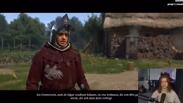 07:08:07Es wird eine Nebenquest angenommen und beschlossen, zu einem Dorf zu reiten, um dort weiterzuquesten. Unterwegs wird festgestellt, dass das Reiten im Spiel sehr angenehm ist. Es wird überlegt, ob es ein gutes Pferdespiel geben sollte. Im Dorf wird nach dem Donnerkeil gesucht. Es wird ein Mann namens Tomlin gefunden, der zugibt, den Donnerkeil bei Kämpfen verwettet zu haben, aber ihn nun gefunden hat und behalten will. Er zeigt den Donnerkeil, der jedoch anders beschrieben wird. Es stellt sich heraus, dass der Donnerkeil gestohlen wurde, und Tomlin bittet Heinrich, ihn zurückzubringen. Der Dieb wird als Peter identifiziert, der in einem Hof in Raborsch arbeitet.