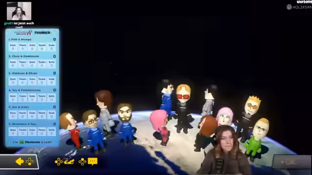 00:18:44Die Teamzusammensetzung für das Mario Kart Turnier wird vorgestellt: Ellotrix und Bram, Maluna und Dalu, Jay und Streamerin, Jenny und Asta, Pete und Mango, sowie Chris und Dom Tendu. Es gab kurzfristige Absagen von Reese und Elotrix, für die die Streamerin und Sepp eingesprungen sind. Die Streamerin äußert ihren Unwillen, Mario Kart zu spielen, ebenso wie Jen, was zu humorvollen Kommentaren führt. Es wird betont, dass der Raumcode für das Turnier nicht weitergegeben werden soll. Sepp wird von Daniel "gezwonkelt", was für Verwirrung sorgt. Technische Details zum Einblenden des Overlays werden besprochen, und es wird festgestellt, dass alle Beteiligten ähnliche technische Herausforderungen haben.
