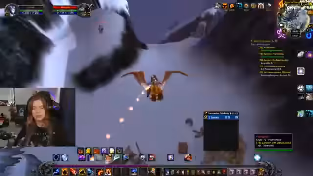 02:04:50Zu Beginn des Streamteils beschäftigt sich die Streamerin mit der Questabgabe, die zunächst nicht angezeigt wurde, da sie die Trickles-Quest erst abschließen musste. Sie stellt fest, dass es wieder 15 Uhr ist und plant, in eine Spinnenhöhle zu gehen. Anschließend wechselt sie das Thema und beschreibt, dass sie die Greifenplätze machen möchte, obwohl sie den zugehörigen Mount als langweilig empfindet, da sie bereits einen Greifen auf einem anderen Charakter besitzt.