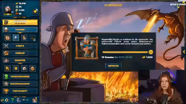 06:37:45Die Streamerin konzentriert sich auf den Ausbau der Festung ihres zweiten Charakters, insbesondere auf Stein, der viel Holz kostet. Sie greift erneut andere Festungen an, um Ressourcen zu sammeln und rekrutiert weitere Soldaten. Nachdem die Aufgaben für diesen Charakter erledigt sind, wechselt sie zu einem dritten Charakter, einem Druiden, für den sie einen anderen Spielmodus gewählt hat. Hier geht es darum, möglichst viele Punkte durch das Sammeln von Gegenständen und das Erfüllen von Kopfgeld-Aufgaben zu sammeln. Sie teilt ihre Begeisterung für das Spiel, das sie bereits vor zehn Jahren gespielt hat, und erwähnt die Shakes & Fidget Taverne auf der Gamescom. Sie kämpft gegen einen Bergtroll und muss feststellen, dass ihr Inventar voll ist. Sie verkauft einige Tränke, um Platz zu schaffen und ihre Werte zu verbessern. Sie erwähnt auch, dass sie bis Level 400 gespielt hat und sich auf weitere Freischaltungen wie Haustiere und die Unterwelt freut.